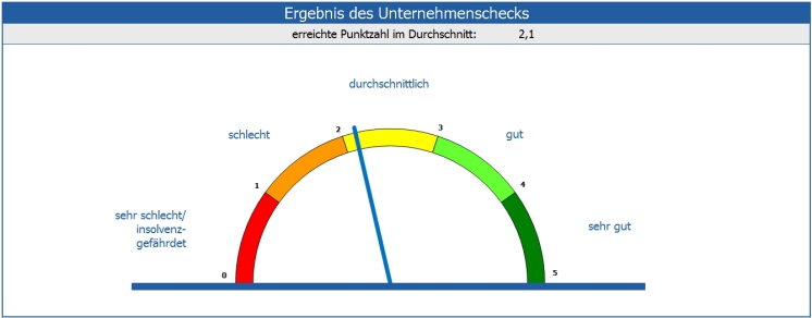 Auf einem „Tachometer“ wird das Gesamtergebnis des Unternehmens-Kurzchecks angezeigt.